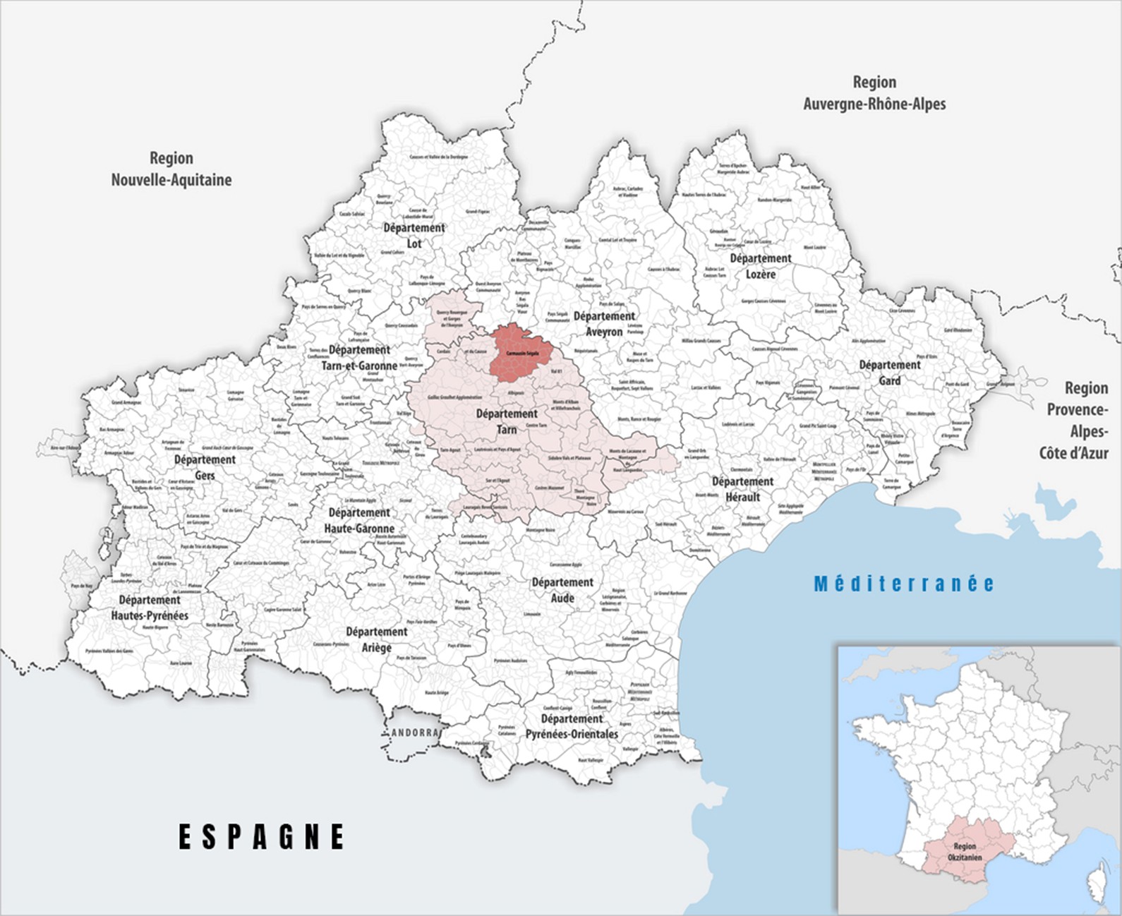 Figure 1. Carte « Localisation du Carmausin-Ségala », réalisée par Tschubby, traduite de l’allemand. License : CC BY-SA 3.0